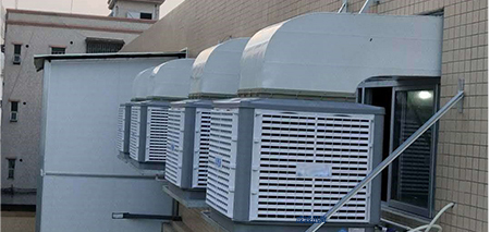 针对五金加工车间,广东成城建议使用环保空调+负压风机组合来降温。环保空调正压送风配合风机负压抽风,形成室内给排风循环系统,让室内空气快速流通循环,达到通风降温的效果。
