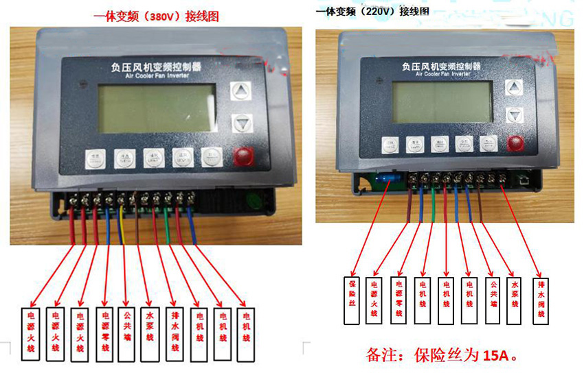 引出负压风机上的电源线和主电源连接,按规定配电安装,电线接头处用绝缘胶布包裹,套上线管或线槽固定。配电安装关系到车间降温设备整个使用期内的质量稳定性和使用安全性,一定要做到牢固、稳定、安全、不偷工减料。