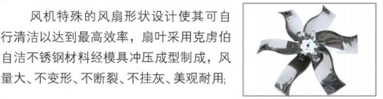 重锤式负压风机特点:   1.扇叶全部采用不锈钢材料,由不锈钢冲压成型,无灰尘,美观耐用;