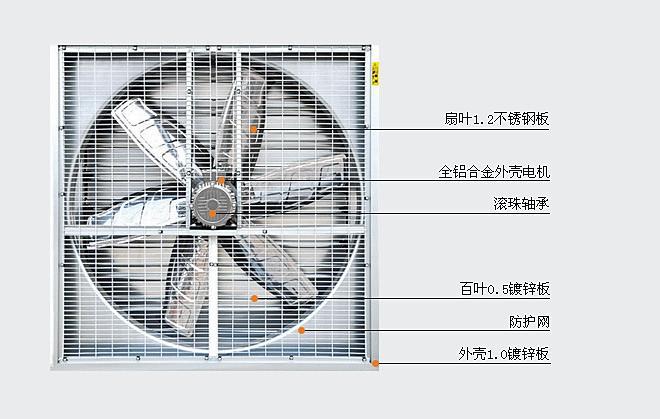 扇叶 扇叶全部采用不锈钢材料,由不锈钢冲压成型,无灰尘,美观耐用;