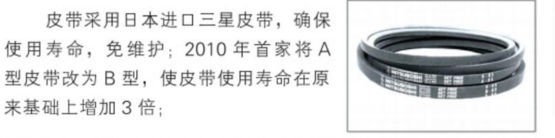 皮带 皮带采用国产三力士和进口皮带,确保使用寿命,免维护。